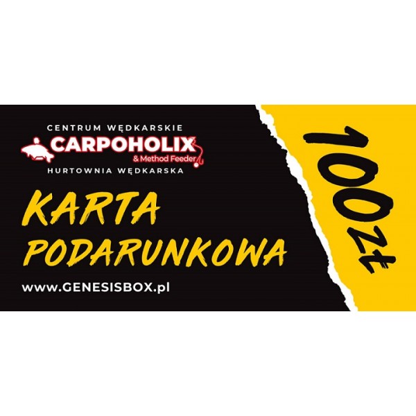 Bon Prezentowy na zakupy w sklepie karpiowym WWW.GENESISBOX.PL. Bonu nie można wymienić na pieniądze. Wartość i data ważności bonu jest naniesiona na bon. Bon Prezentowy dotyczy wyłącznie produktów znajdujących się w ofercie sklepu. Bon należy zrealizować jednorazowo podając przy zamowieniu indywidualny kod znajdujący się na bonie . Bon prezentowy jest zabezpieczony oraz numerowany jednorazowym kodem, realizowanym na okaziciela.