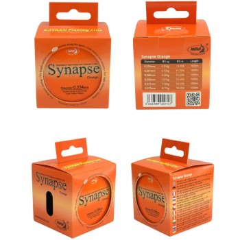 Synapse Orange, wysokiej jakości tonąca żyłka monofilamentowa. Wykonana z zaawansowanego kopolimeru o niskiej rozciągliwości 12–13% (mierzonej przy 50% nominalnej wytrzymałości na zerwanie).
